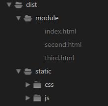 在src文件夹下新建一个module文件夹,里面创建三个文件夹 index、second、third 在三个文件夹中分别创建html、vue、js文件