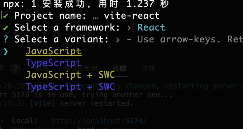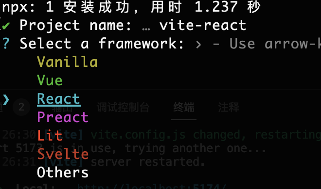 在创建项目时,选择react,就可以创建一个支持react的项目。