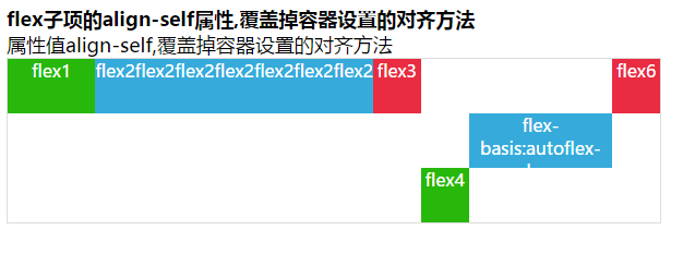 - align-self:用来控制子项单独的覆写默认的对齐方式。