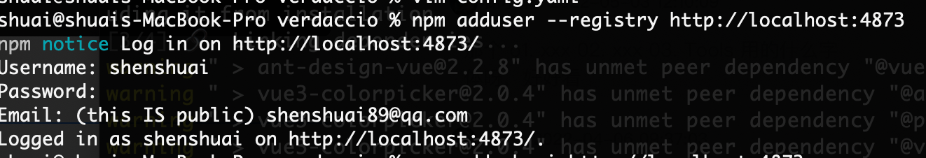 设置好packages后,我们还得更改auth的值,因为此时注册用户是没有限制的,也就是说如果你的私有 npm 库部署在外网环境的话,任何人都可以通过npm adduser命令注册用户。