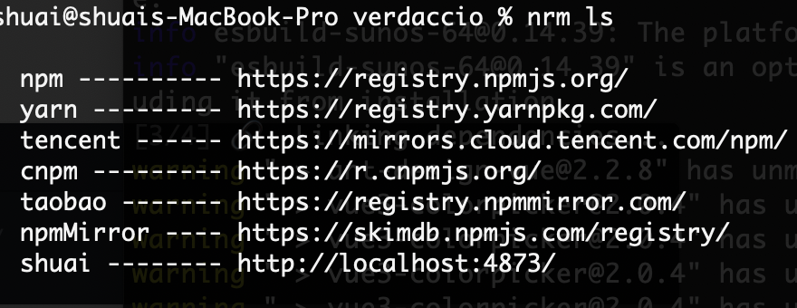 接着,我们可以运行 nrm ls 命令来查看目前存在的源: